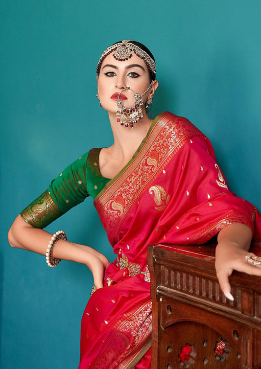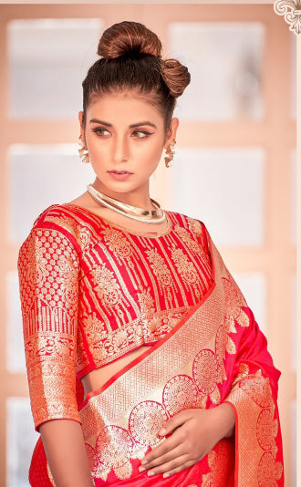Appealing Pink Color Soft Soft Silk Copper Weaving Saree For Women