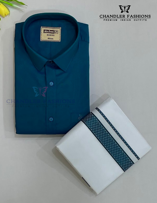 Alluring Peacock Green Colored Shirt And Dhoti Set For Men