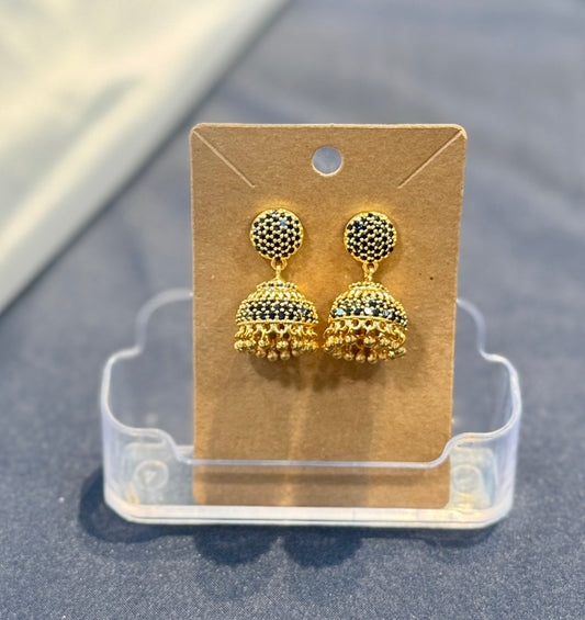 Beautiful Dark Pink And White Stones Gold Plated Jhumkas