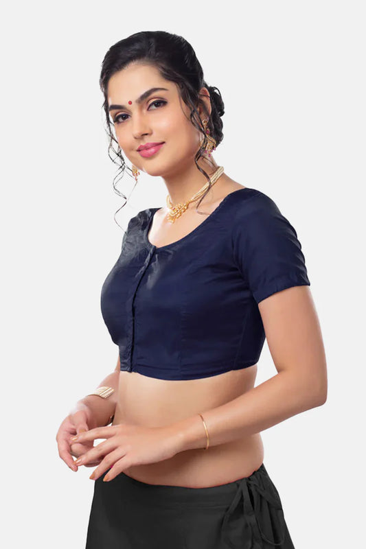 Beautiful Blue Color Half Sleeves Front Open Silk Blouse For Women