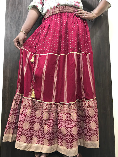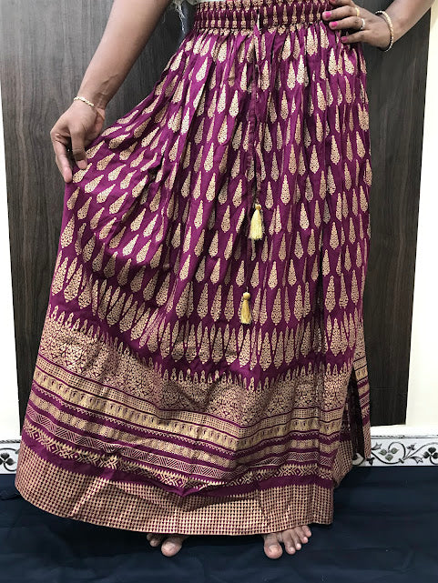 Elegant Wine Color Printed Work Rayon Skirt For Women