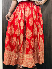 Delightful Red Color Printed Work Rayon Skirt For Women