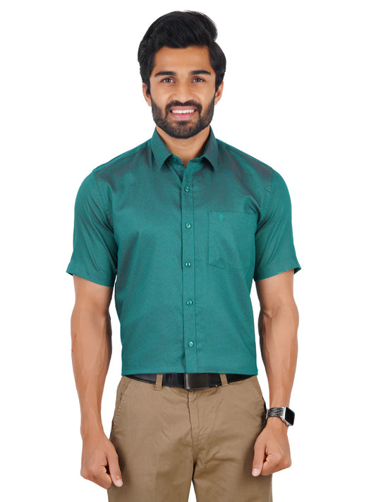 Lovely Teal Blue Color Half Sleeve Silk Plain Shirt For Men