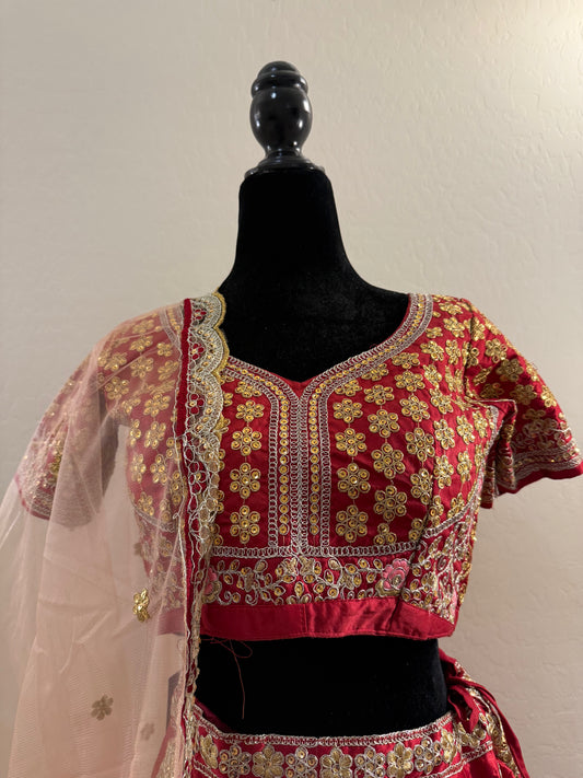 Beautiful Red Colored Malay Satin With Embroidery And Sequins Work Lehenga Choli