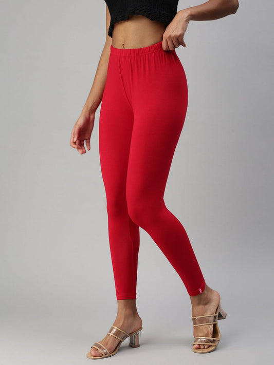 Delightful Premium Stretchable Cotton Fabric Apple Red Colored Leggings For Women