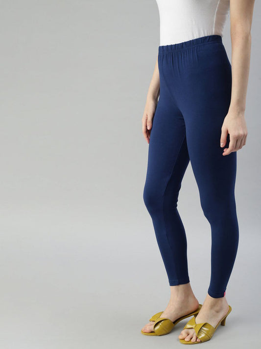 Charming Navy Blue Colored Stretchable Cotton Fabric Leggings For Women