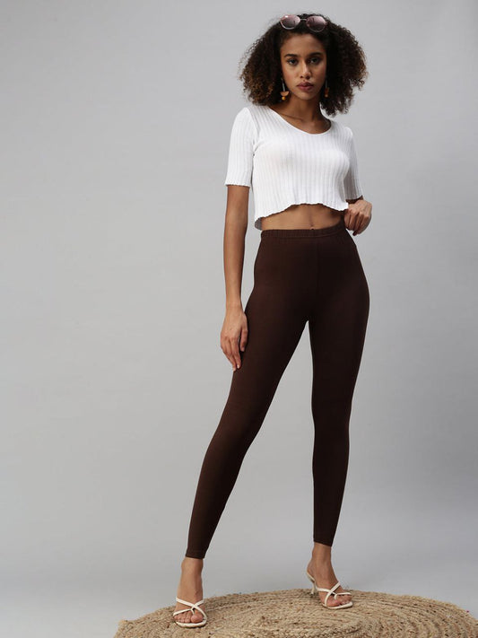 Attractive Brown Color Cotton Ankle Length Leggings For Women