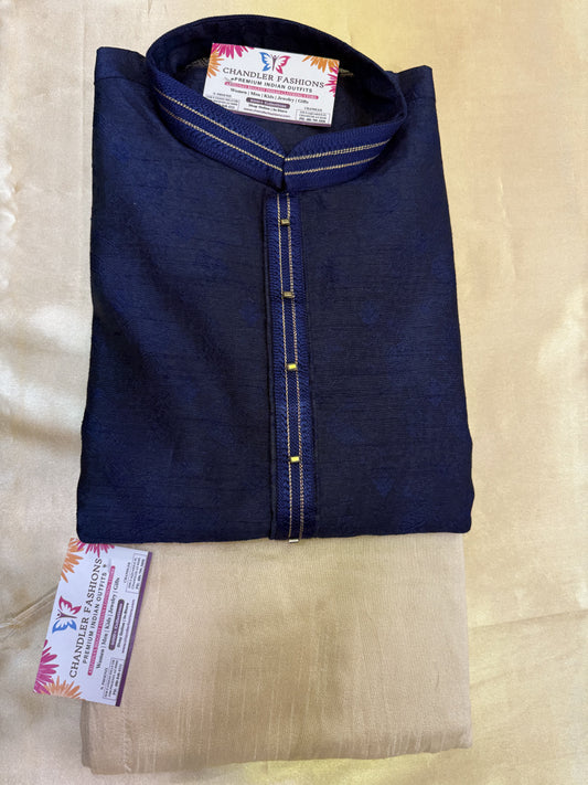 Elegant Dark Blue Color Jacquard Silk Embroidery Work Men's Kurta