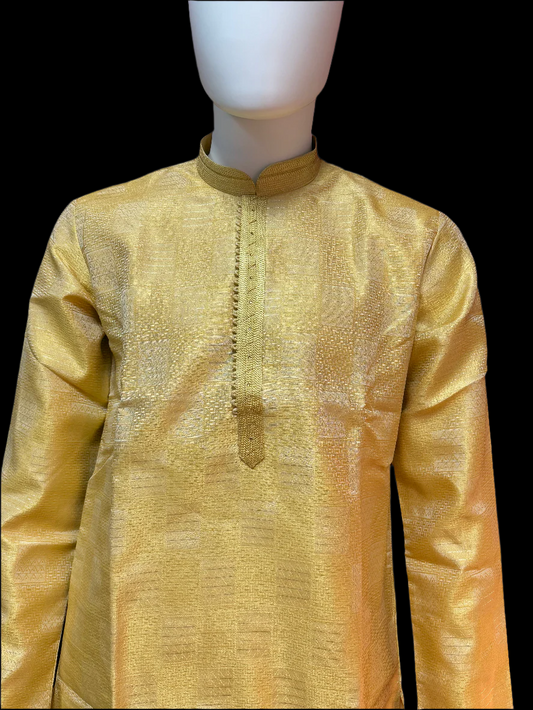 Gorgeous Light Mustard Yellow Color Jacquard Silk Embroidery Work Men's Kurta