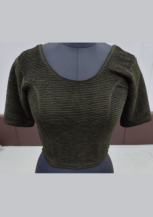 Attractive Dark Olive Green Color Ready To Wear Stretchable Blouse For Women