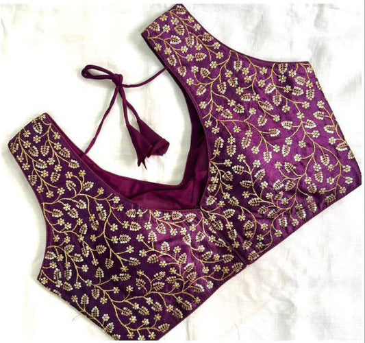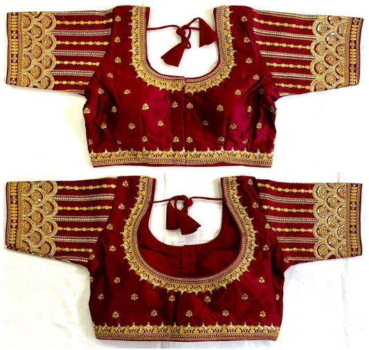 Gorgeous Maroon Color Heavy Fentam Silk Thread Embroidery Designer Ready To Wear Blouse