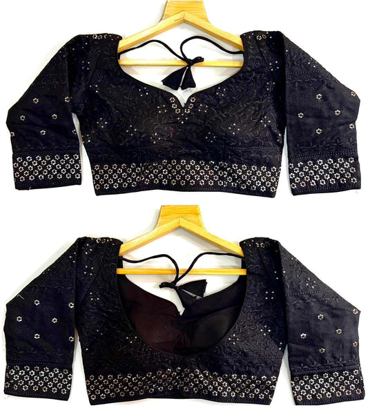 Stunning Black Color Milan Silk With Sequence Work Ready To Wear Blouse