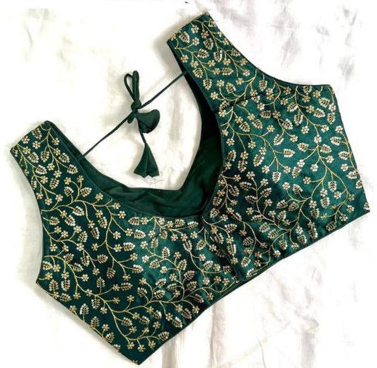 Beautiful Green Colored Designer Sequins Work Readymade Blouse For Women