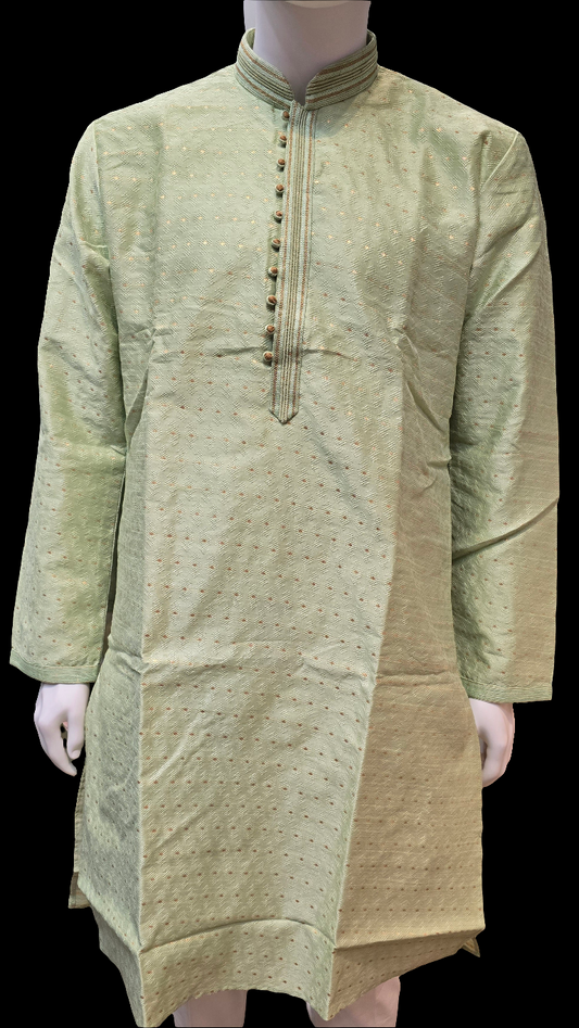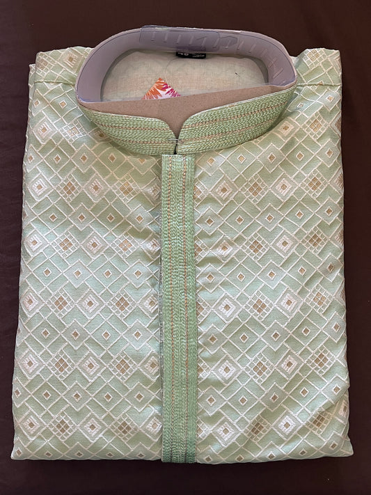 Gorgeous Pista Green Color Self Design Embroidery Work Jacquard Kurta Set For Men