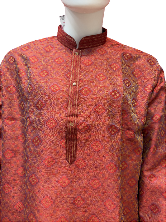Beautiful Red Colored Jacquard Men's Kurta With Floral Printed Work
