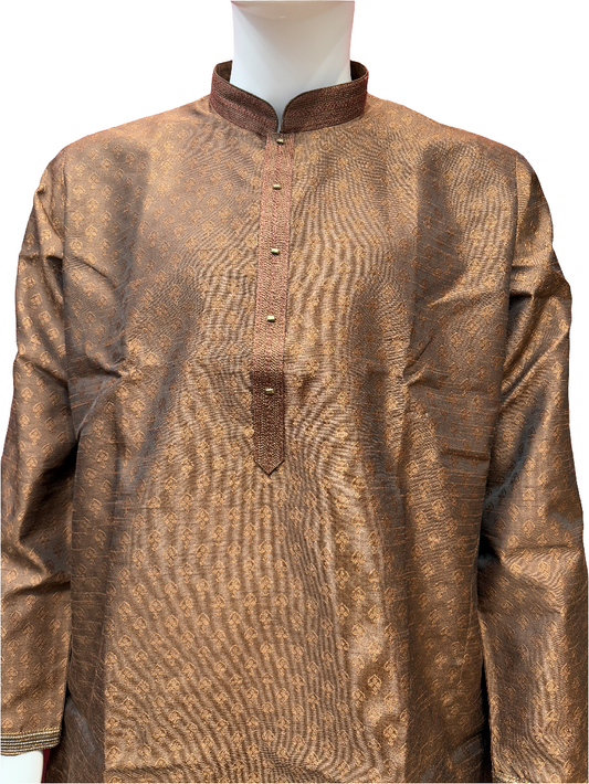 Wonderful Brown Color Jacquard Embroidery Work Men's Kurta