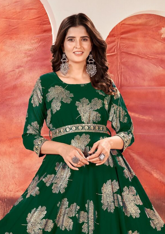 Gorgeous Green Color Faux Georgette With Sequins Embroidery Kurti