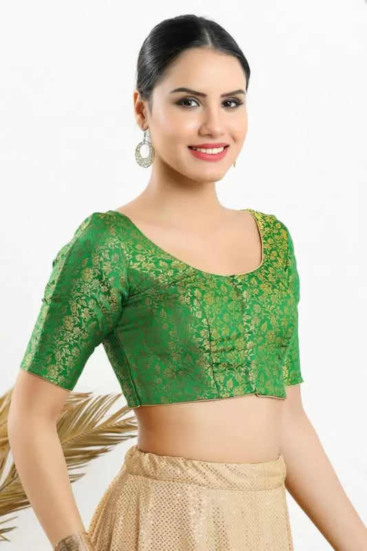 Beautiful Green Colored Jacquard Printed Blouse For Women