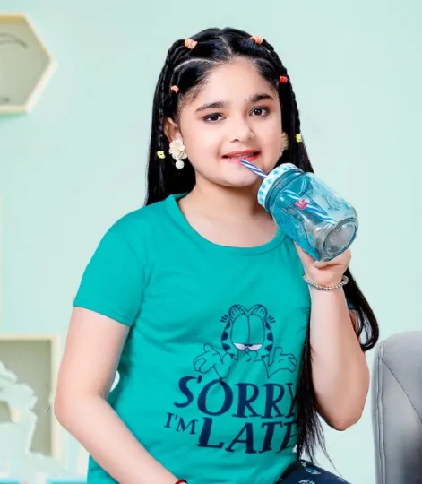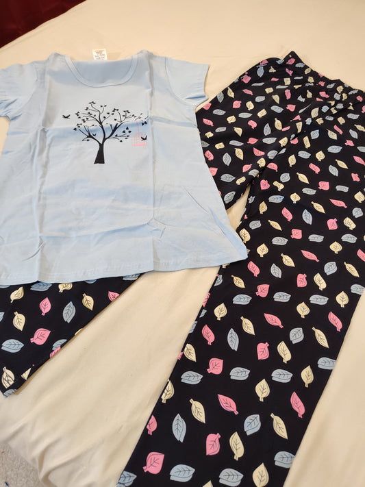 Attractive Kids Blue And Peach Printed Cotton Night Wear