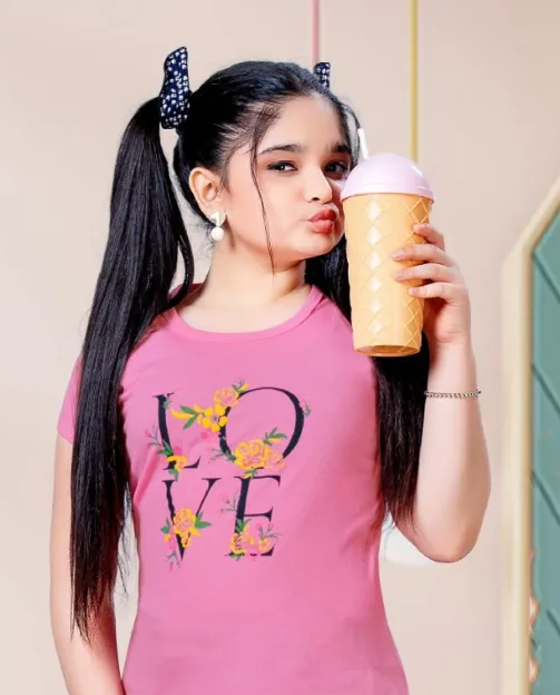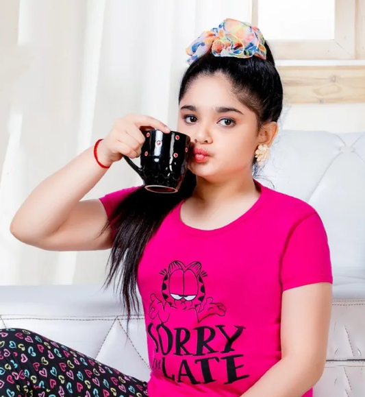 Beautiful Pink And Black Short Sleeve Round Neck Rich Cotton Pajama Set
