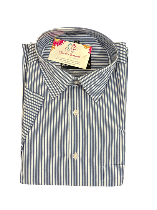Elegant White And Light Blue Colored Shirt With Half Sleeves