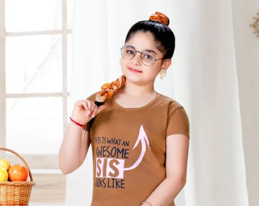 Trendy Kids Brown Printed Cotton Night Wear