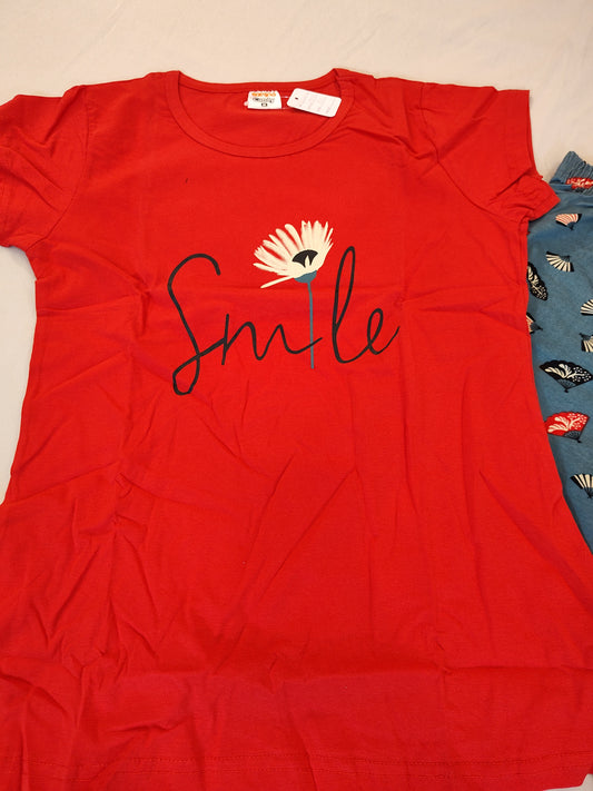 Charming Red And Teal Green Short Sleeve Round Neck Rich Cotton Pajama Set