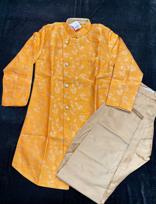 Beautiful Ethnic Kids Light Orange Silk Kurta Pajama Set With Brooch Pin