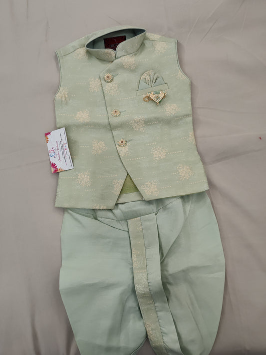 Appealing Light Green Color Kids Dhoti Style Pant With Brooch Pin