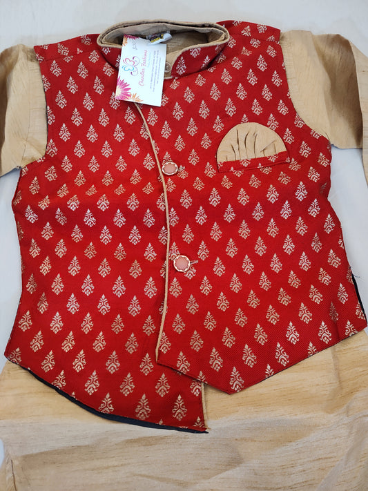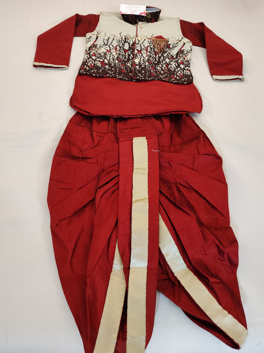 Trendy Boys Red Color Silk Cotton Kurta Pajama Pant And Dhoti Style Pant