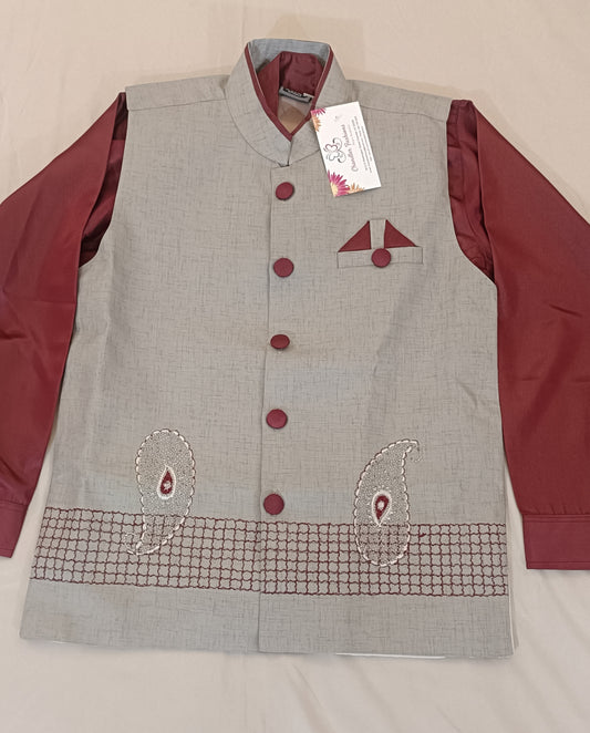 Elegant Maroon Color Cotton Kurta With Pajama Pants For Kids