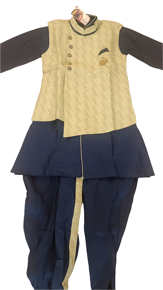 Gorgeous Brown Color Boys Silk Cotton Kurta Pajama Pant And Blue Dhoti Style Pant