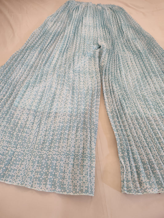 Fabulous Palazzo Pants With White And Light Blue Pattern Design