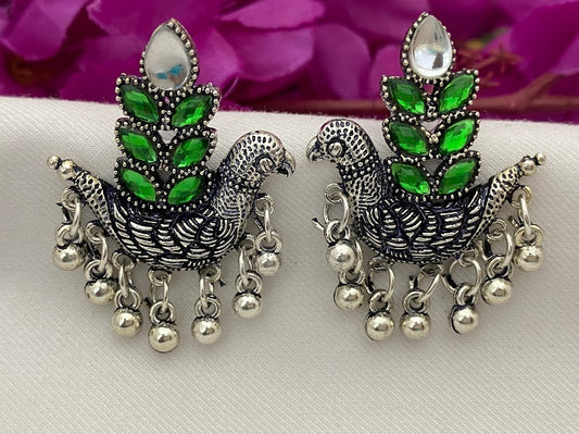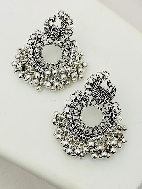 Alluring Oxidized Silver Peacock Design Jhumkas With Bead