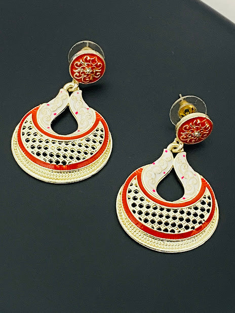 Attractive Red Color Gold Plated Chaandbali Style Designers Earrings For Women