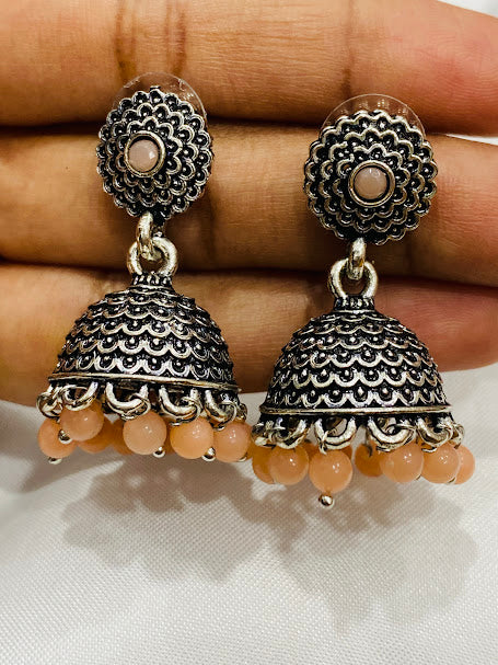 Marvelous Oxidized Silver Plated Jhumka Earrings With Beads