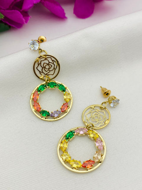 Beautiful Circle Shaped And Multicolor Stone Designer Earrings