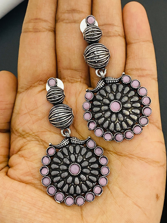 Appealing Pink Color Silver Designer Oxidized Earrings For Women