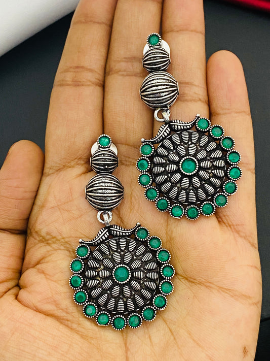 Trendy Emerald Ruby Stone Oxidized German Silver Plated Ethnic Earrings