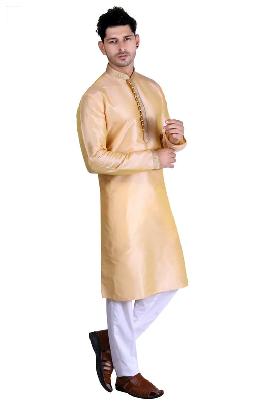 Attractive Men's Ethnic Kurta With Pajama Set - Yellow