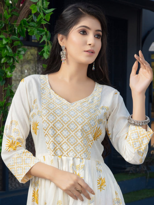 Beautiful Off White Floral Cambric Printed Cotton Gown