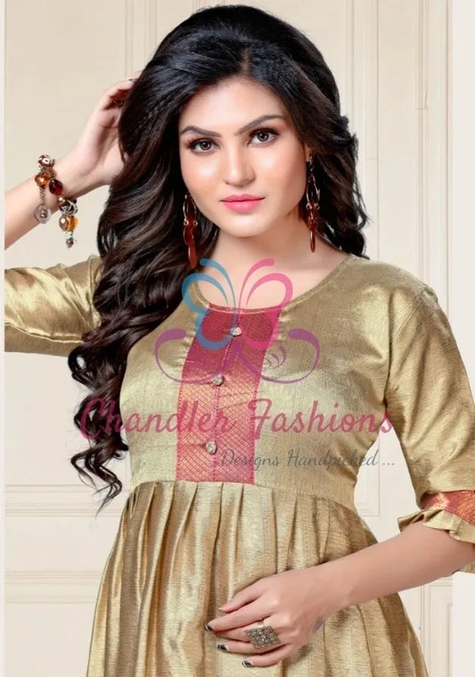 Pretty Yellow Color Aura Silk Kurti With Red Border