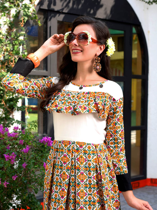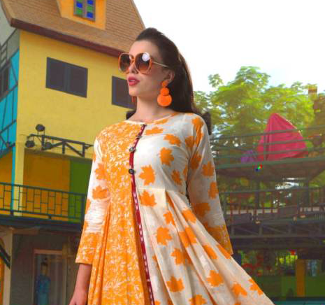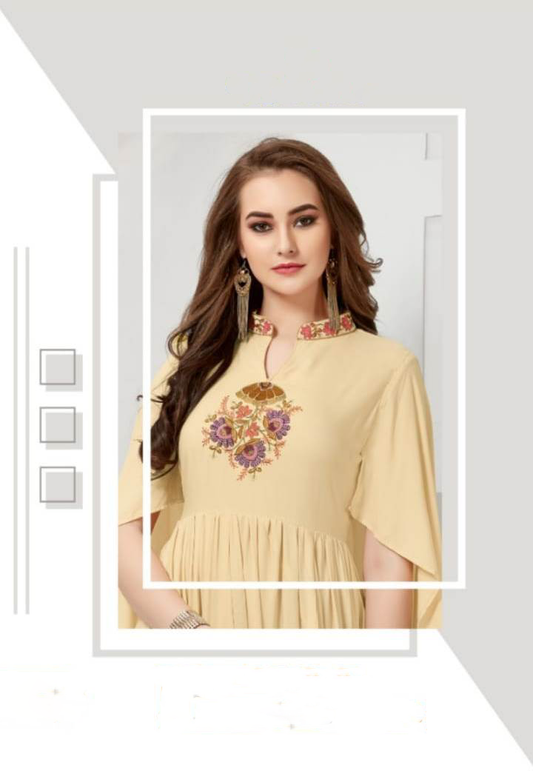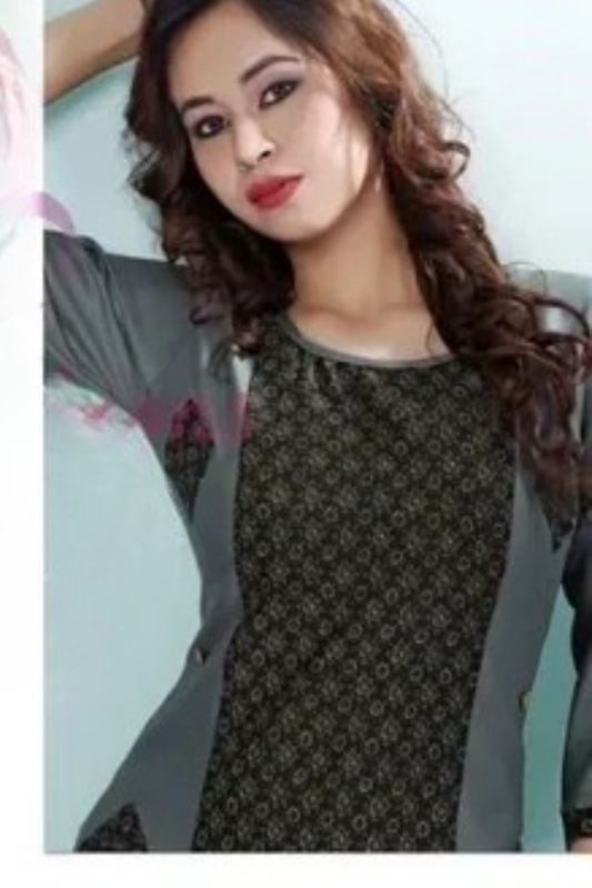 Pretty Indo Western Multi-Colored Slub Rayon Round Neck Kurti