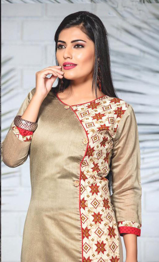 Gorgeous Chikoo Color Silk Cotton Kurti