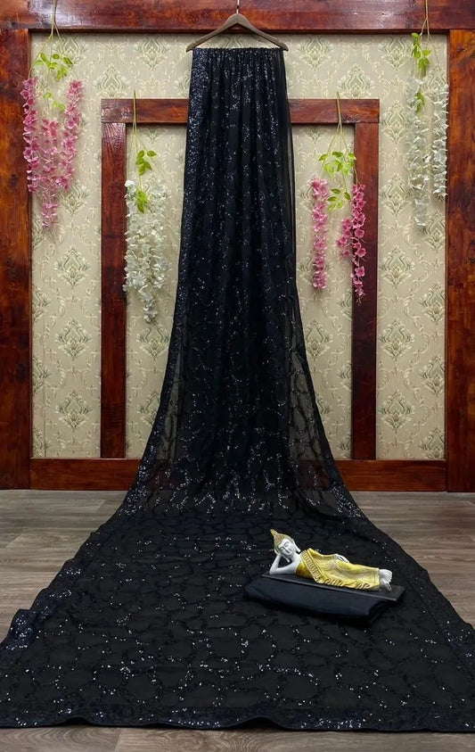 Black Premium Blooming Georgette Sequins Work Designer Saree