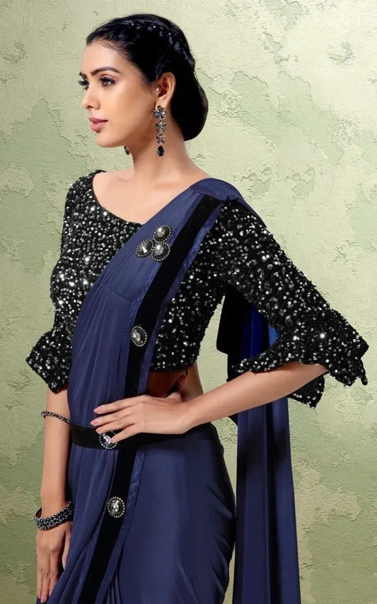 Blooming Blue Color Ready To Wear One Minute Imported Lycra Designer Saree