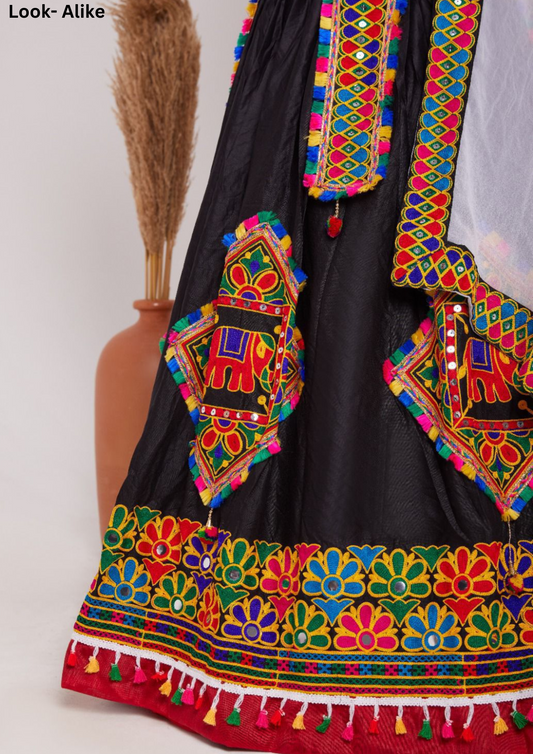 Elegant Black Colored Colored Embroidery And Mirror Work Lehenga Choli And Dupatta For Women