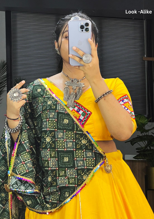 Dazzling Yellow Color Rayon Cotton Chaniya Lehenga Choli With Dupatta Set For Women