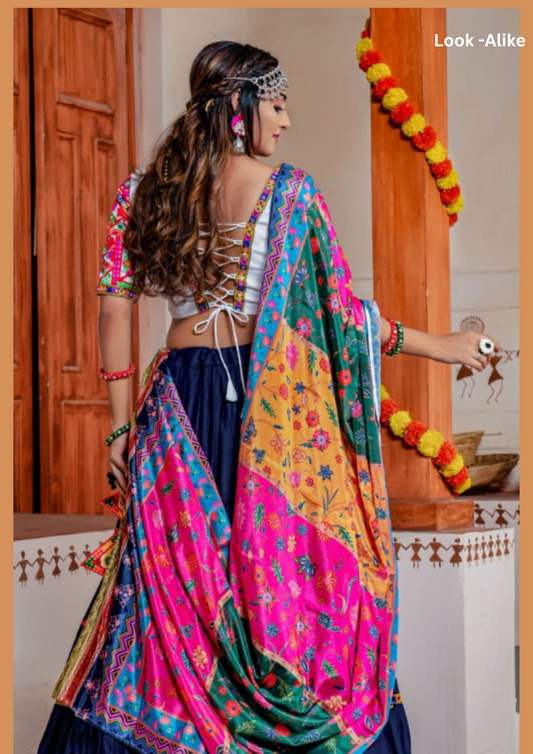 Stunning Black Color Gamthi Work Broad And Patch Work Chaniya Choli For Women