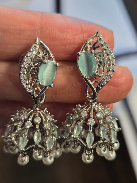Elegant Light Green American Diamond Jumkha Earrings For Women